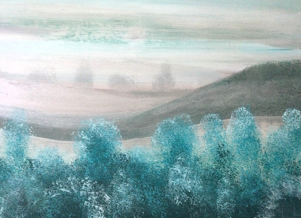 Untergrundstrukturierung mit Gesso, Acrylfarben auf Leinwand