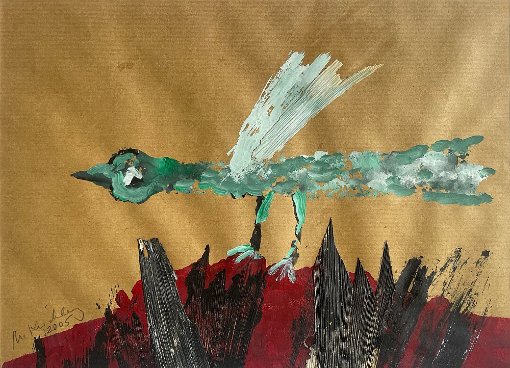 Collage aus Malerei und Materialdruck (gefärbte Maisblätter)