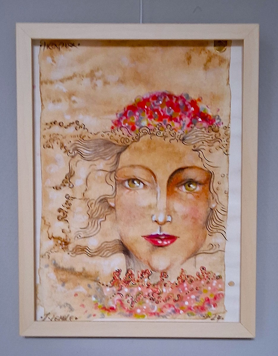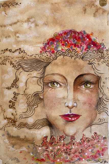 Diese Dreierkonstellation von intuitiv empfangenen Frauenbildnissen entstand in Griechenland, das Land meiner Seele, in dem ich war, bin und sein werde. In meinen Werken nehme ich immer Bezug auf die metaphysische Existenz.